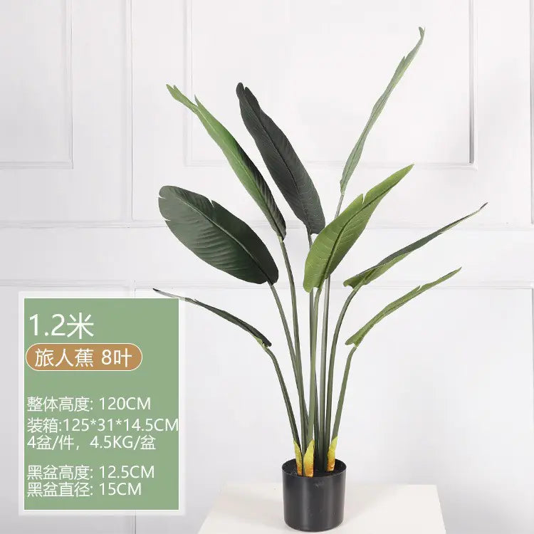 Transform your space with our stunning European-style simulation trees. Perfect for creating an inviting atmosphere at weddings, outdoor events, or as captivating photography props, these artificial trees are designed to impress with their lifelike appearance and vibrant colors. Crafted from high-quality plastic, each tree showcases exquisite craftsmanship, ensuring durability and longevity. Choose from a variety of options, including the elegant Traveller Banana trees available in various heights and leaf counts, or select the unique Banyan Trees that add a touch of tropical charm to any room. With a weight of just 6.75 kg, these large indoor decorative plants are easy to move around and rearrange to fit your desired layout. Each tree is meticulously designed to mimic the natural beauty of real plants, providing a maintenance-free alternative that never wilts. Enhance your indoor or outdoor space with these versatile decorations and enjoy the lush greenery they bring without the hassle of care. Check out our collection of various sizes and types, including: